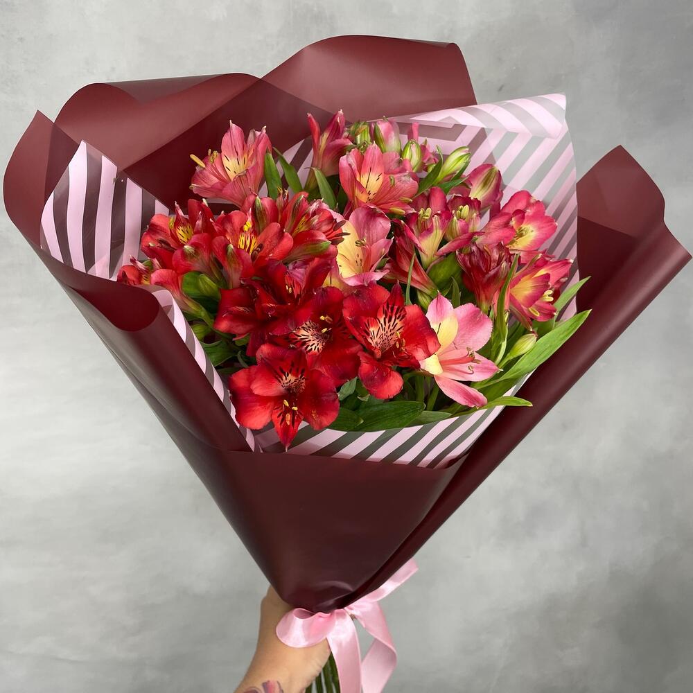 Альстромерия – 7 шт.Лента атласная – 1 шт.Упаковка дизайнерская – 1 шт.
