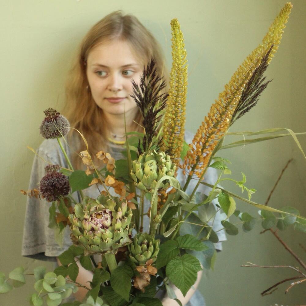 Эвкалипт – 4 шт.Артишок – 3 шт.Тростник – 3 шт.Малина – 3 шт.эремурус – 2 шт.Лук – 2 шт.Лента – 1 шт.