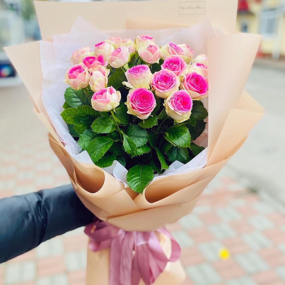 15 пионовидных кустовых роз Роял трендсеттер. Букет 310 Kimbirly Flowers