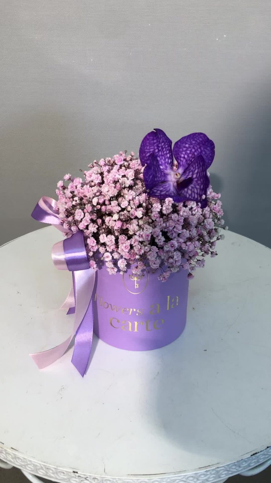 Гипсофила и орхидея Ванда в коробке S