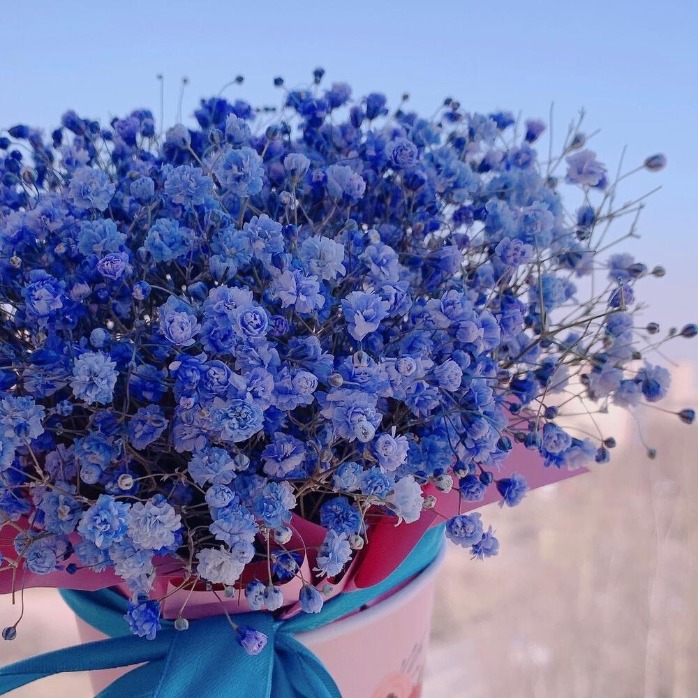 Флористическая губка – 1 шт.Инструкция по уходу – 1 шт.голубая гипсофила – 3 шт.бумажный Стакан – 1 шт.