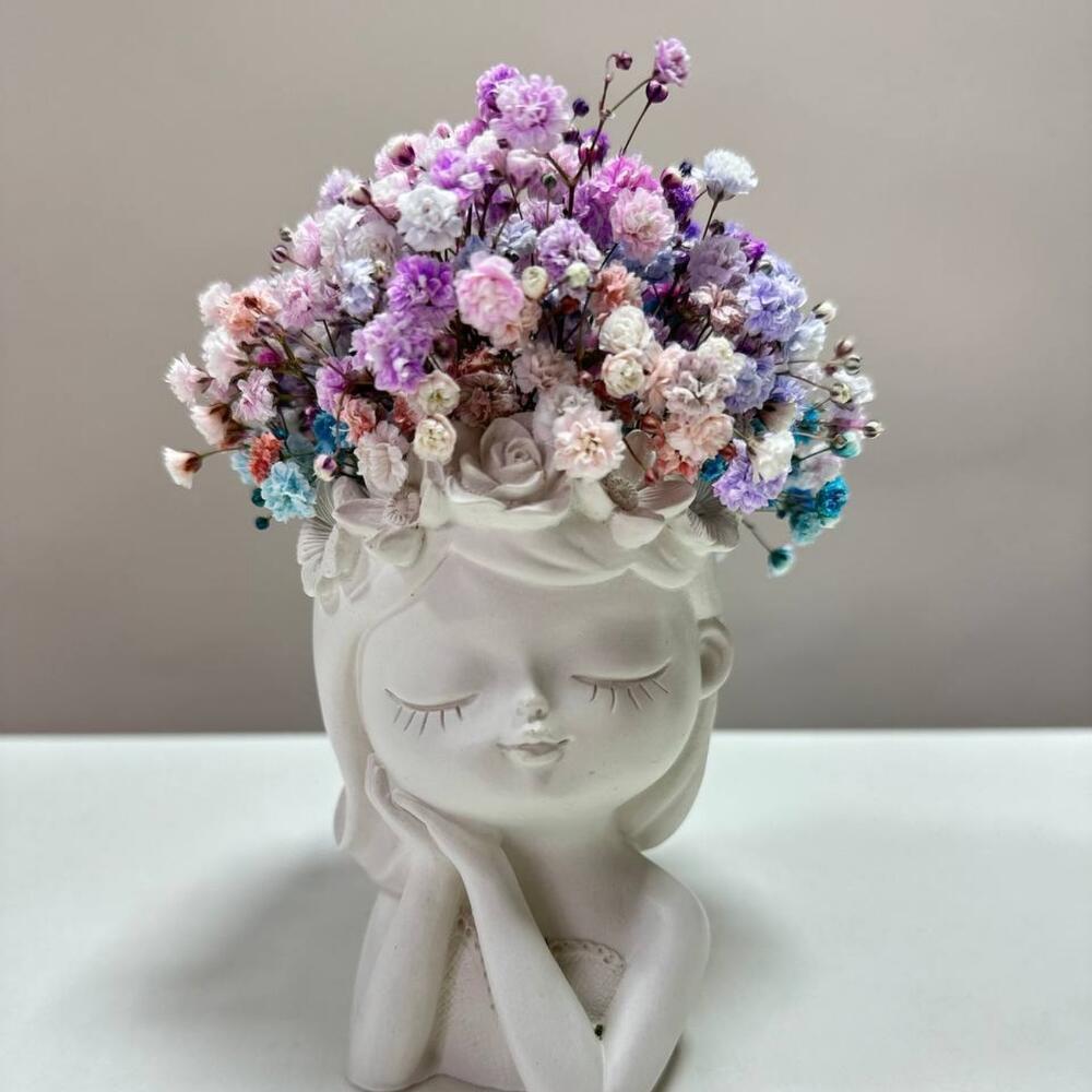 гипсофила радужная – 1 шт. открытка с вашими пожеланиями – 1 шт. кашпо из гипса ручной работы – 1 шт.