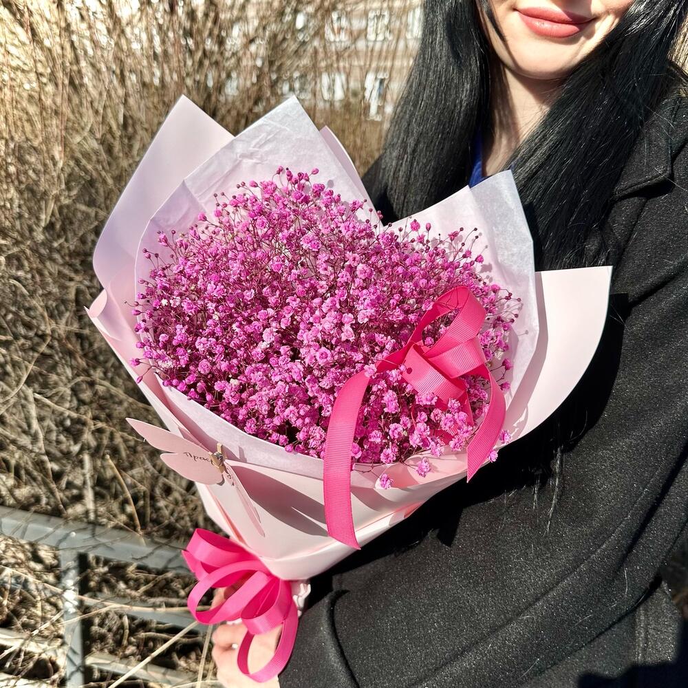 Розовый букет из гипсофилы «Принцесса»
