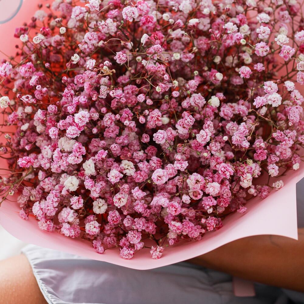 Очаровательный букет из воздушной гипсофилы. Ни одна дама, точно не останется равнодушной при виде такого букета .Инструкция по уходу за цветами прикреплена к каждому заказу.Цветы гипсофилы отличаются стойкостью и даже при высыхании не теряют, декоративности и цвета. Что позволяет, долгое время украшать интерьер в качестве сухоцветов.Подпишем открытку с вашими пожеланиями бесплатно