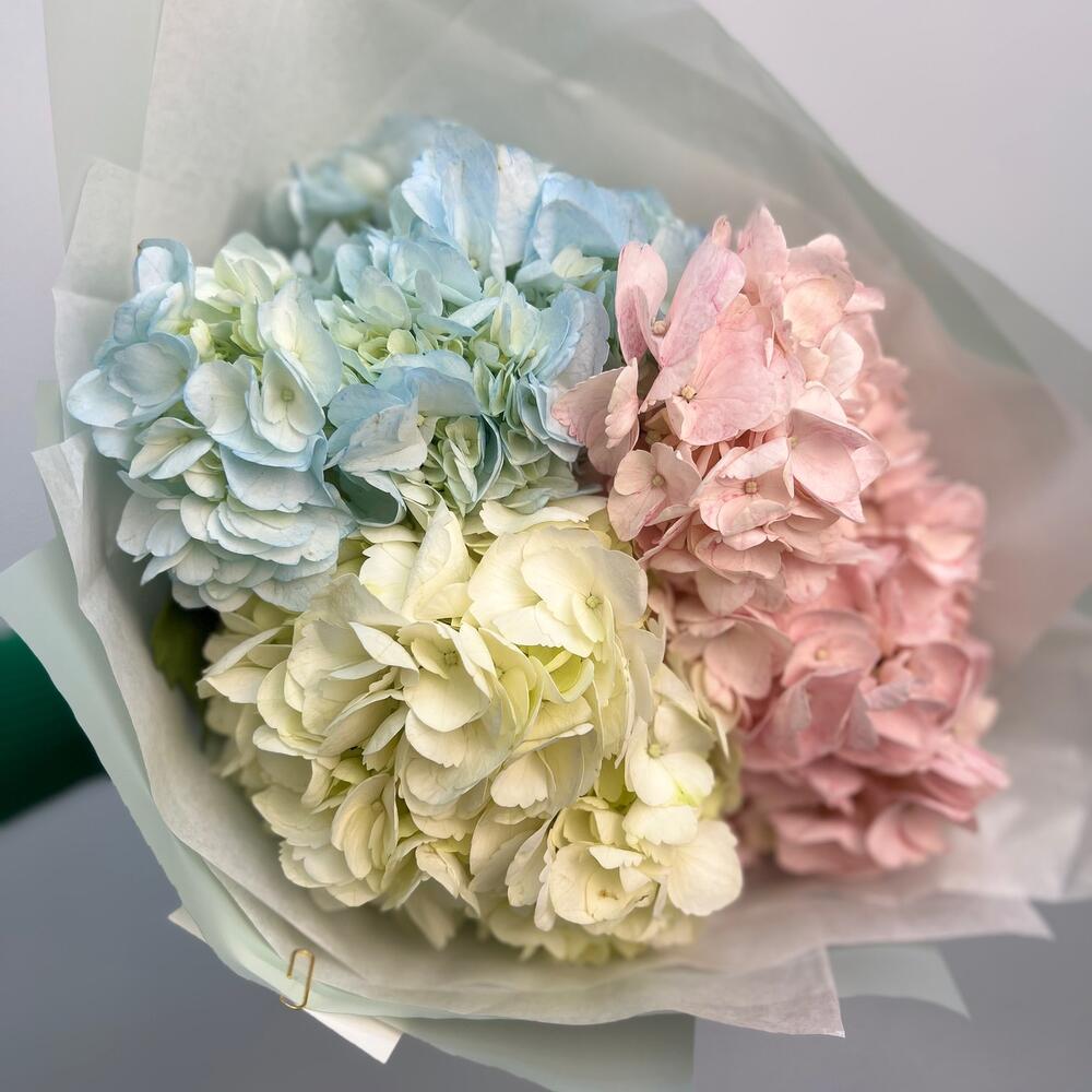 Гортензии в дизайнерской упаковке