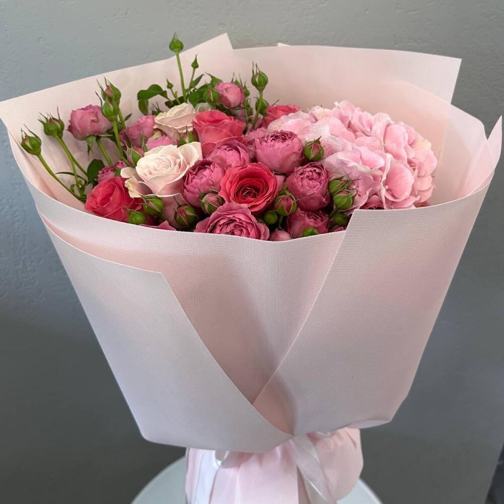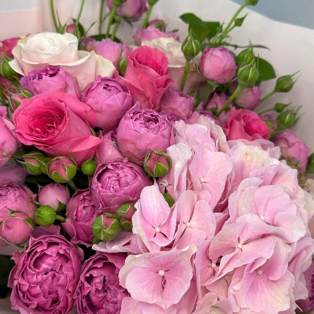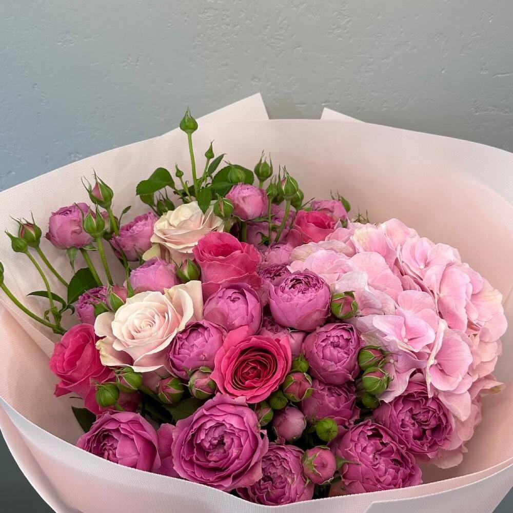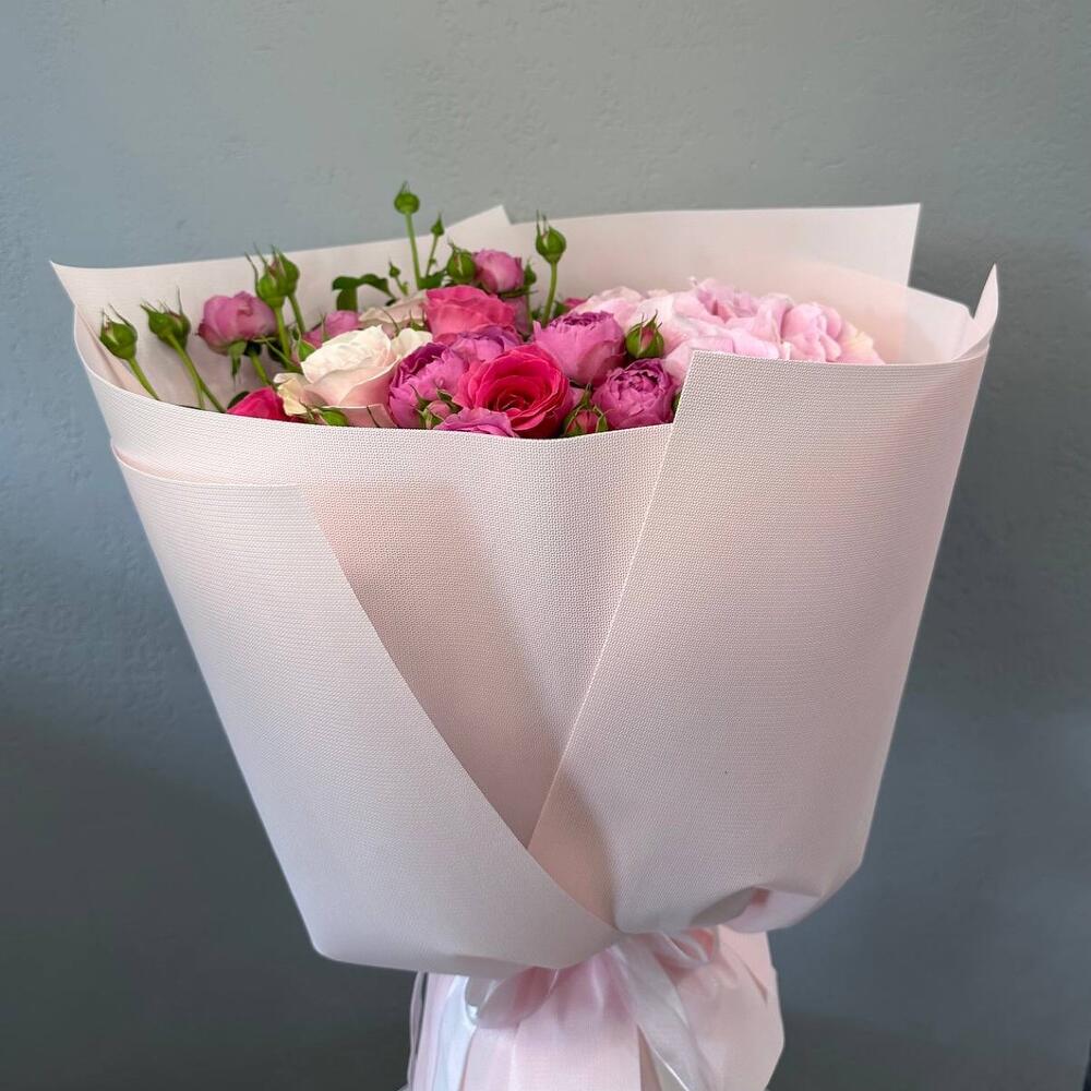 15 пионовидных кустовых роз монобукет