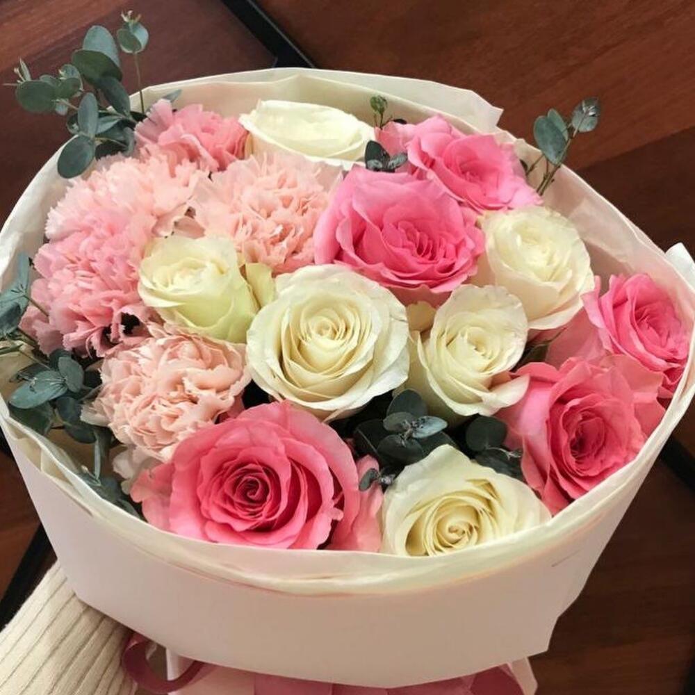 Гвоздики, Кустовые розы, Лизиантусы, Пионовидные розы, Розы