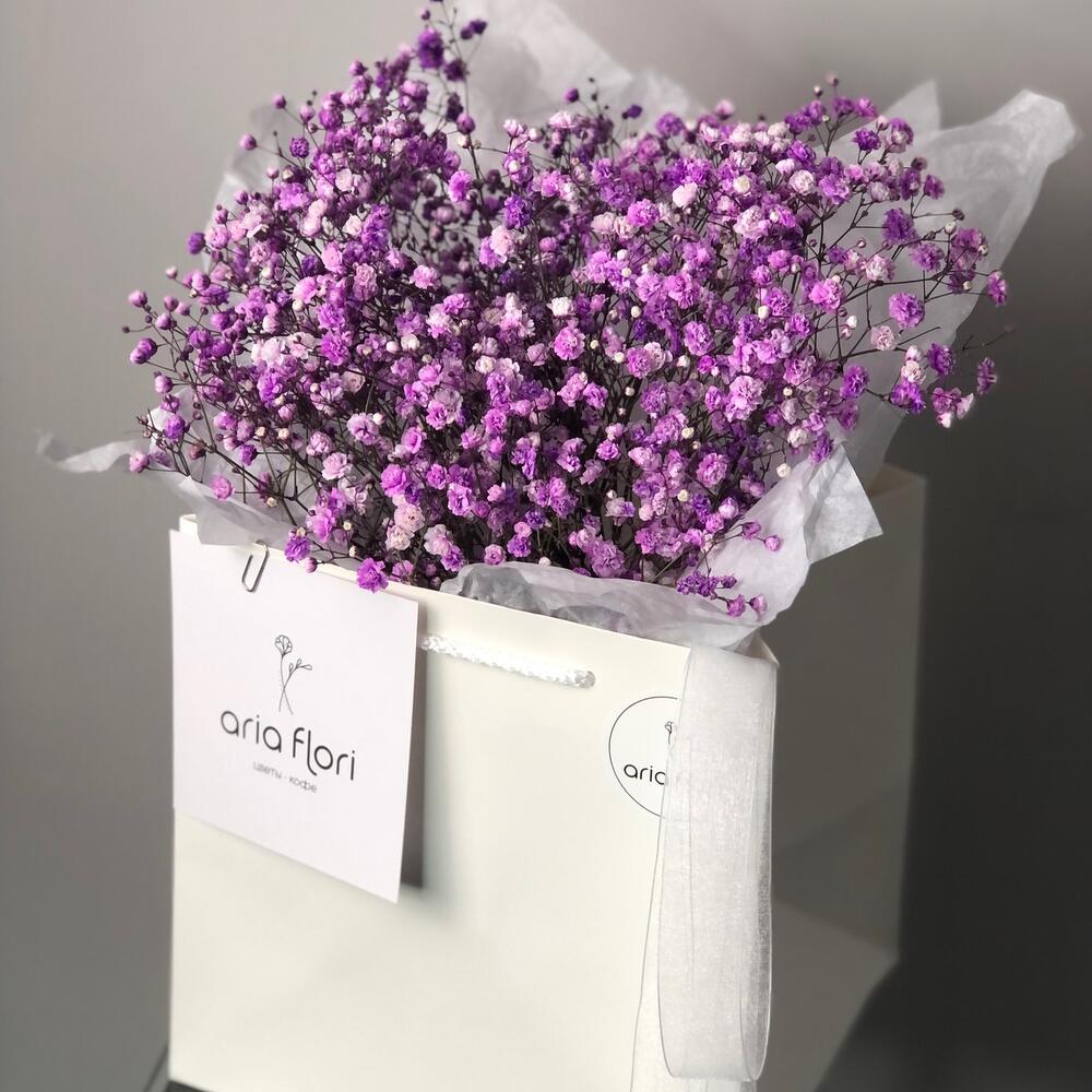 «Лавандовое созвездие» Букет из розы, гвоздики, статица и хлопка