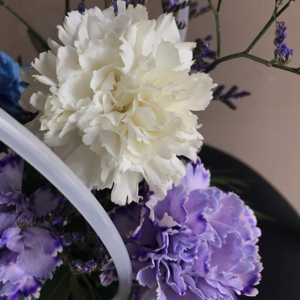 Диантус – 9 шт.Лимониум – 1 шт.Фисташка – 1 шт.Оазис флористический – 1 шт.Сумка – 1 шт.
