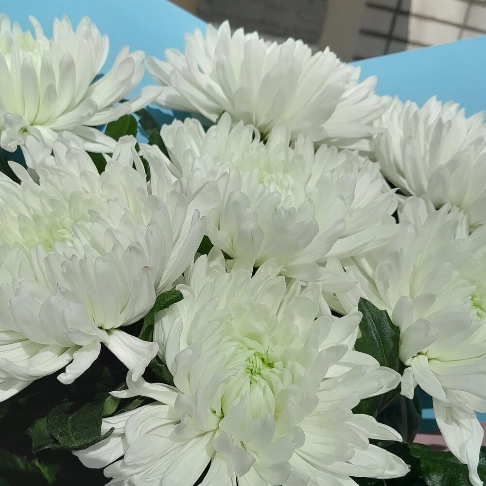 Хризантема Антонов – 7 шт.Упаковка дизайнерская – 2 шт.Лента атласная – 2 шт.