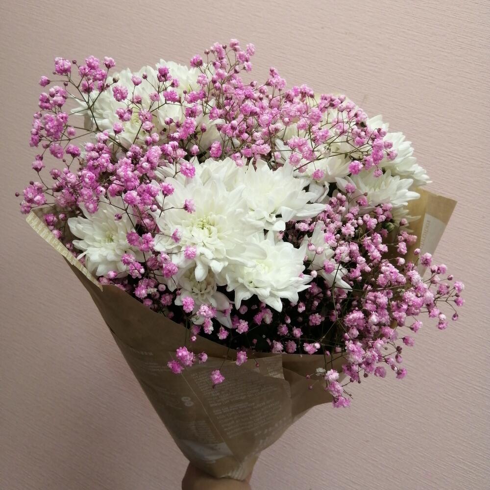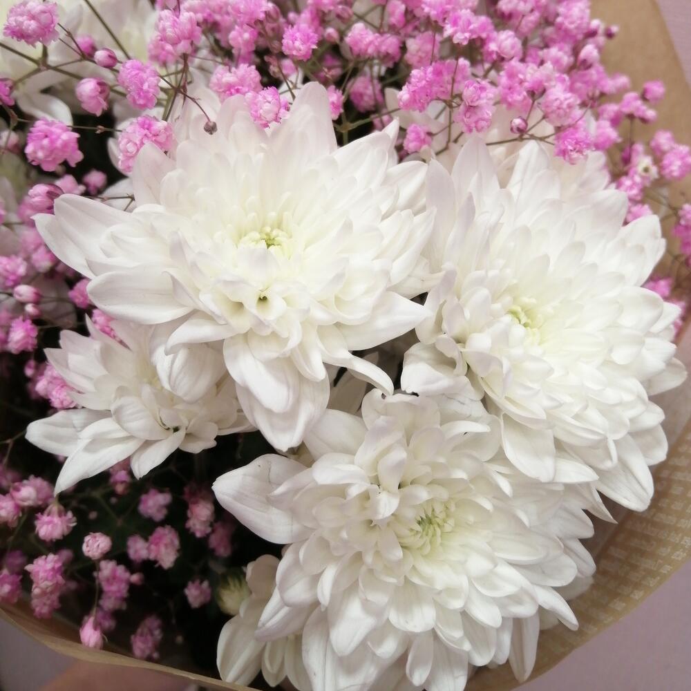 Букет из хризантем с гипсофилой