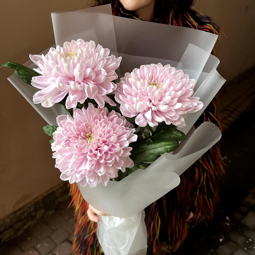 В сиреневую даль: 3 стойких хризантем в стильной упаковке