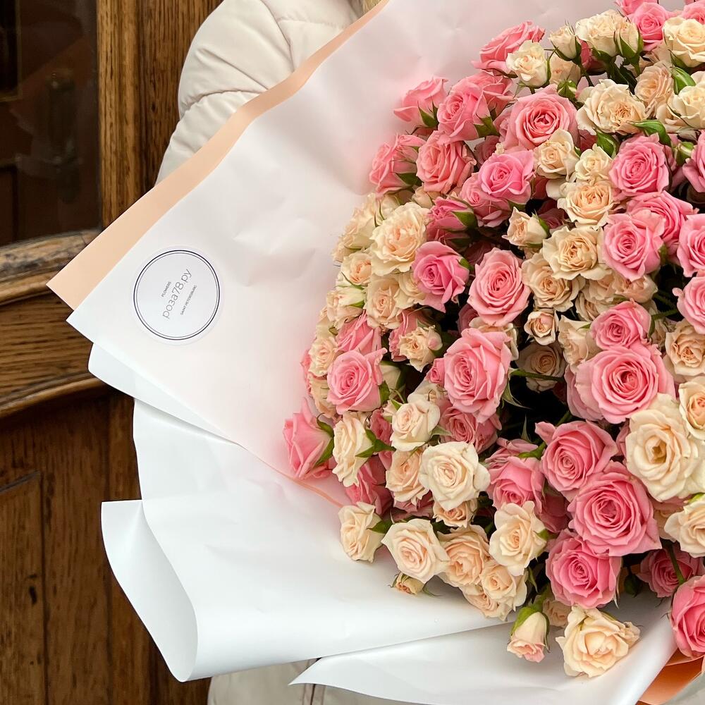 Альстромерии, Кустовые розы, Лизиантусы, Пионовидные розы, Розы, Ромашки