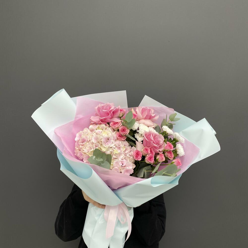 Гвоздики, Кустовые розы, Лизиантусы, Пионовидные розы, Розы