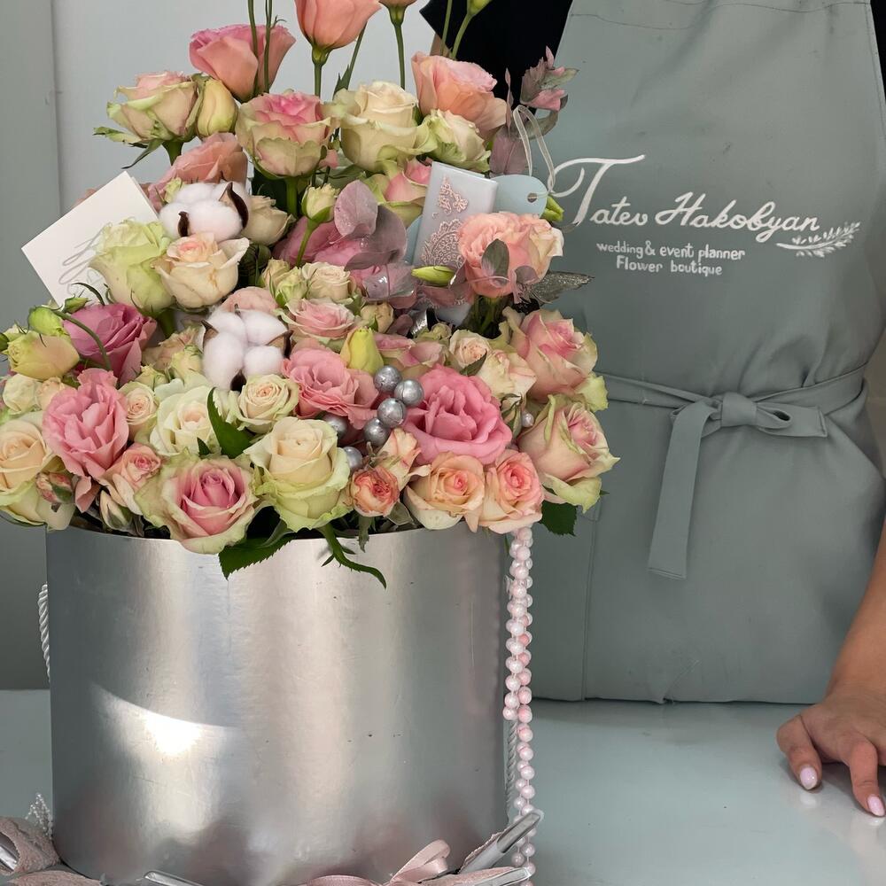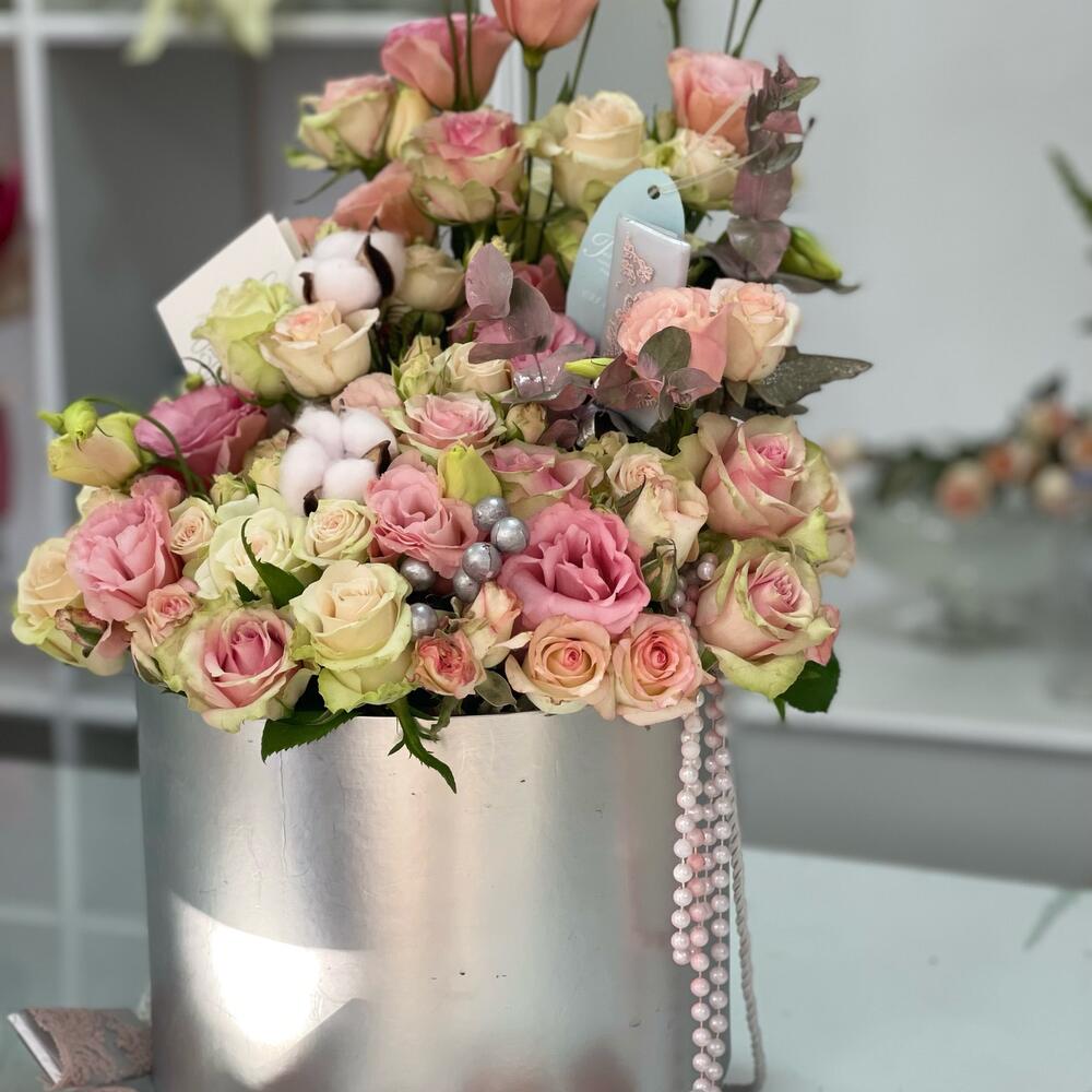 Гвоздики, Кустовые розы, Лизиантусы, Пионовидные розы, Розы
