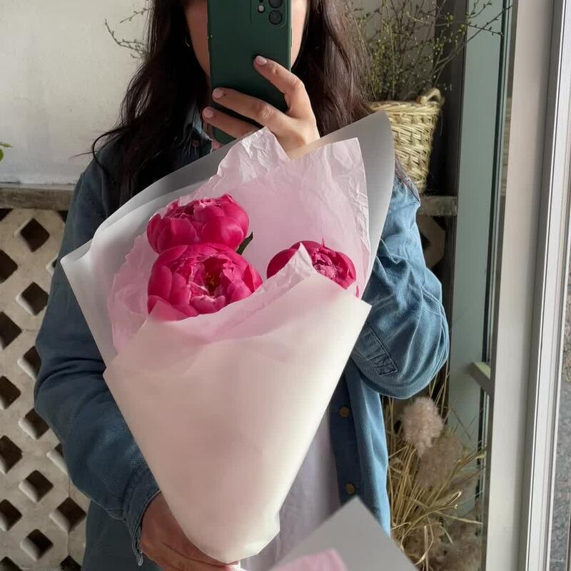 Букет из 3х пионов. Сорт самый стойкий из всех пинов, цветок меняет цвет – волшебно!Самый желанный цветок всех девушек 100500% попадание.Состав комплекта :букет;мини-открытка;транспортировочная упаковка;инструкция по уходу.Повторы могут отличаться от фото, потому … Показать ещёчто цветы живой материал, их форма и оттенки изменчивы, потому точь в точь не всегда получается, так же нам важно, чтобы каждый букет был особенным и индивидуальным. Однако, мы обещаем сохранить состав максимально, выдержать цвет, форму и общее настроение букета.