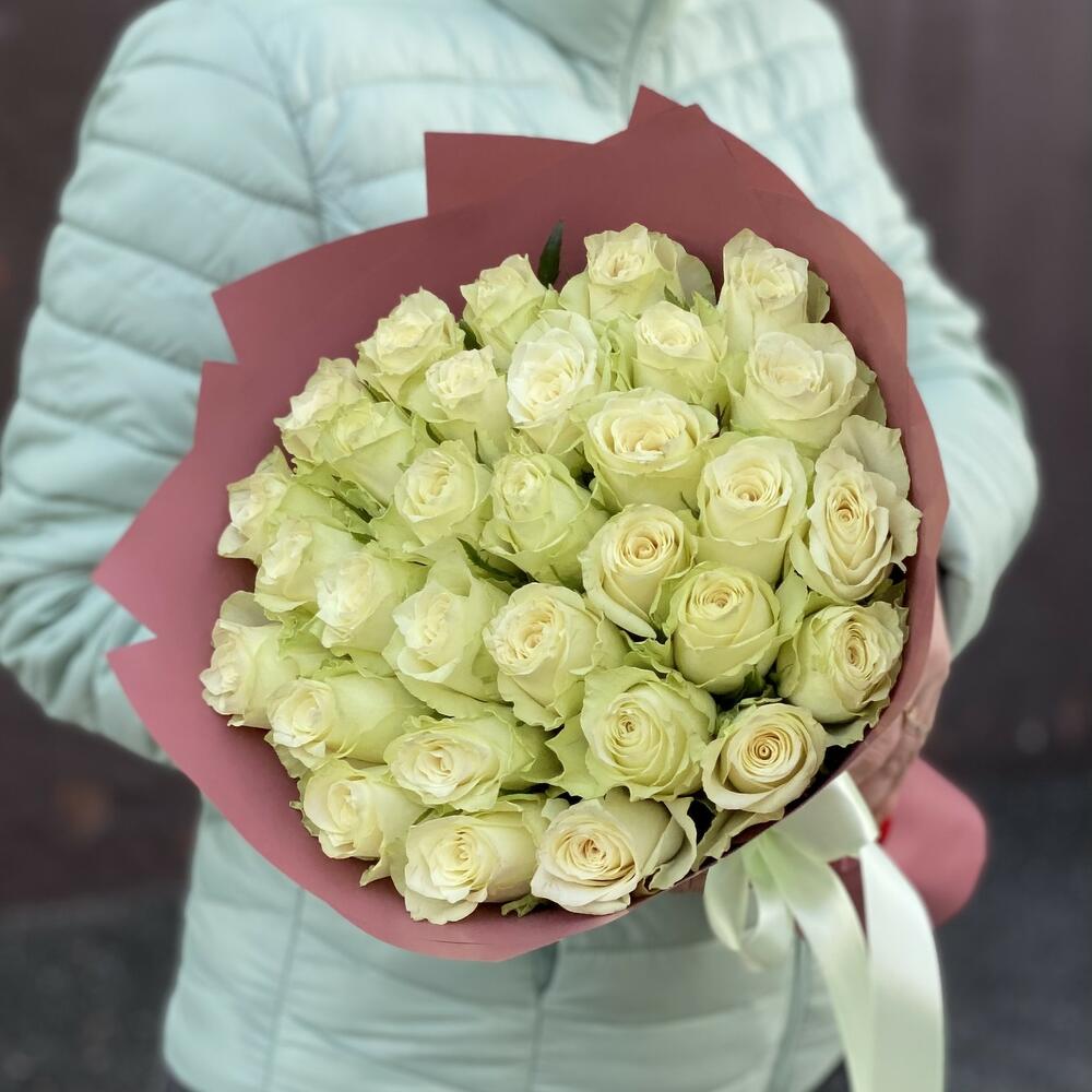 Букет из 31 белой розы Аваланч – это беспроигрышный вариант, такой букет не оставит равнодушной ни одну девушку.
