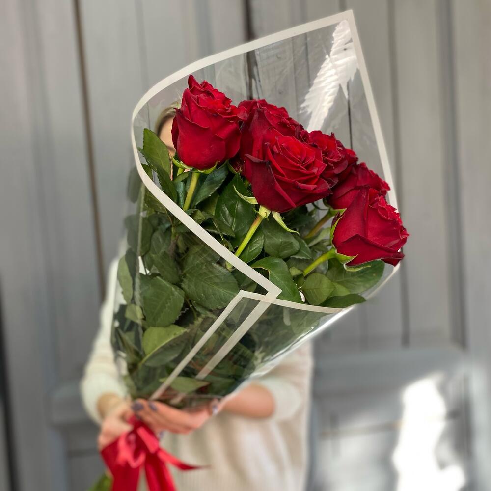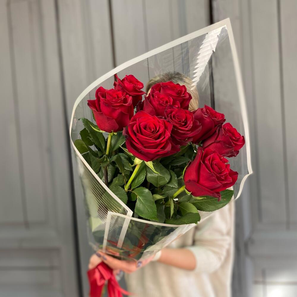 9 красных роз 60-70 см