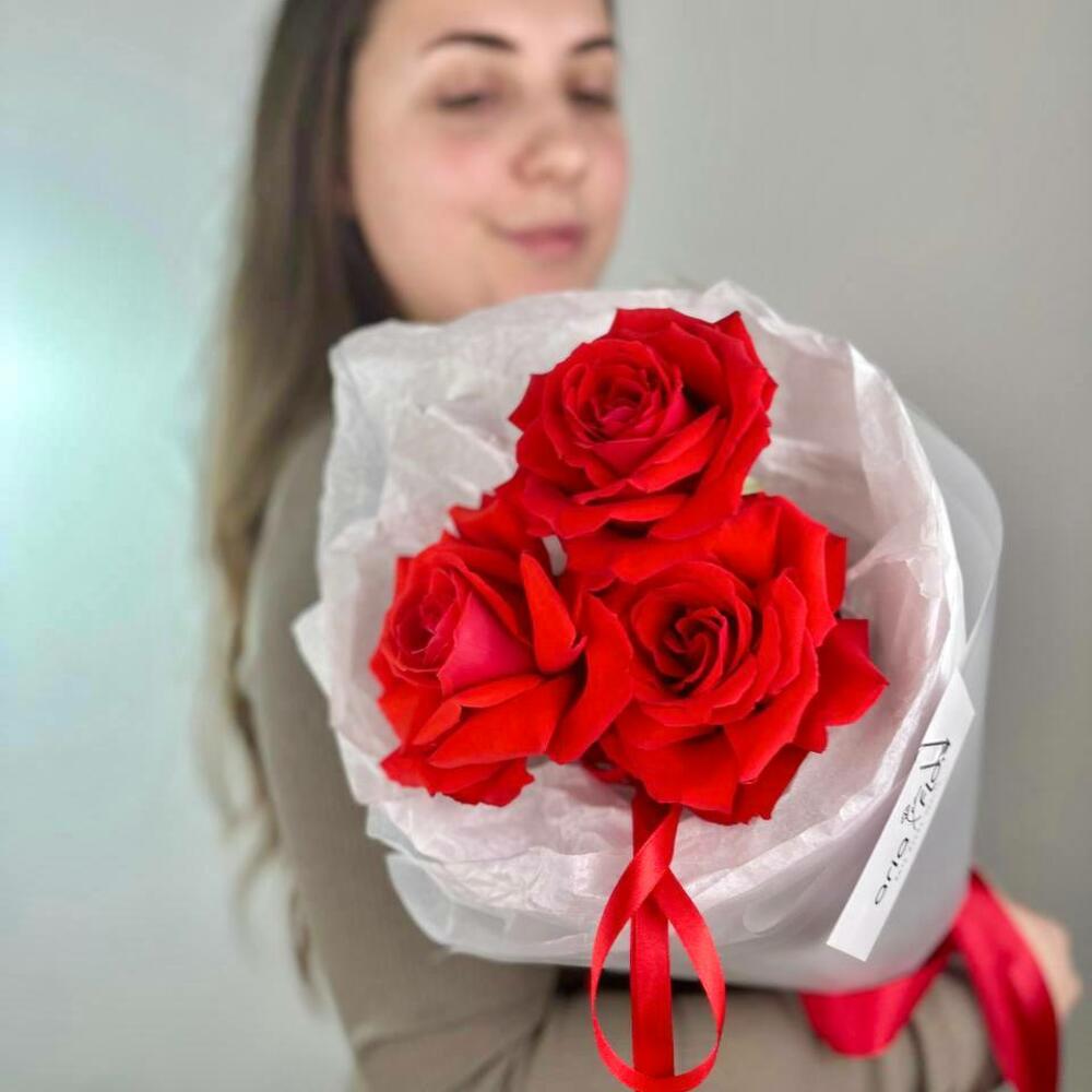 Роза Эквадор – 3 шт.Упаковка дизайнерская – 1 шт.подкормка для цветов – 1 шт.записка с вашим текстом – 1 шт.советы по уходу за срезанными цветами – 1 шт.медиант шоколадный – 1 шт.