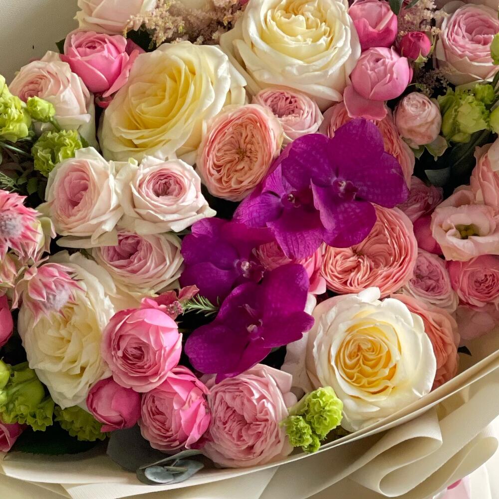Кустовые розы, Лизиантусы, Пионы, Розы
