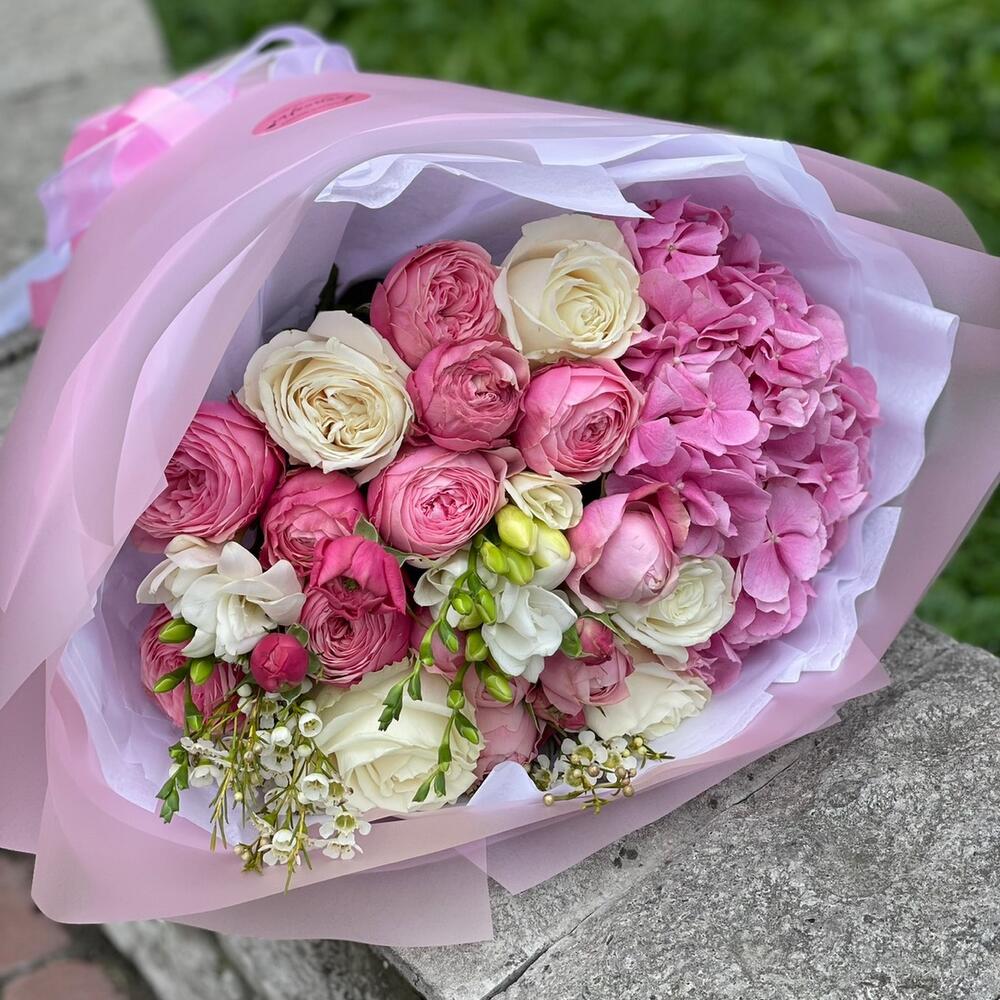 Гвоздики, Кустовые розы, Лизиантусы, Пионовидные розы, Розы