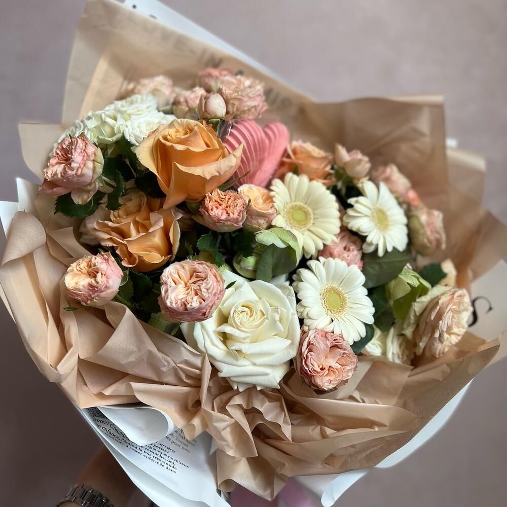 Букет из пионовидных роз и гербер