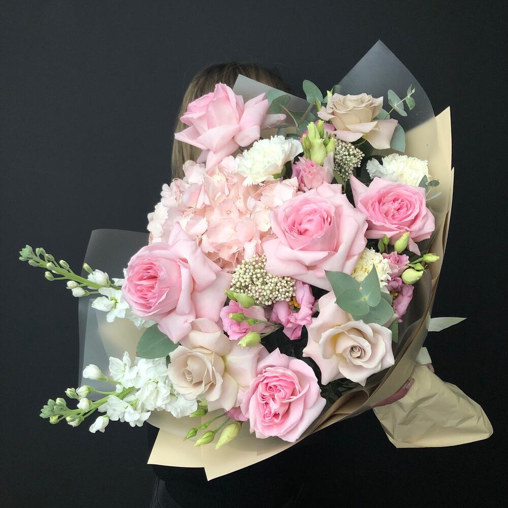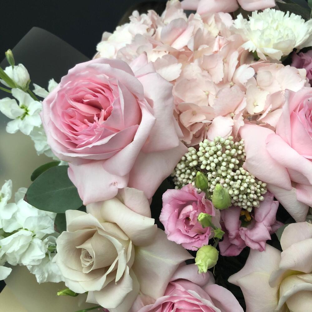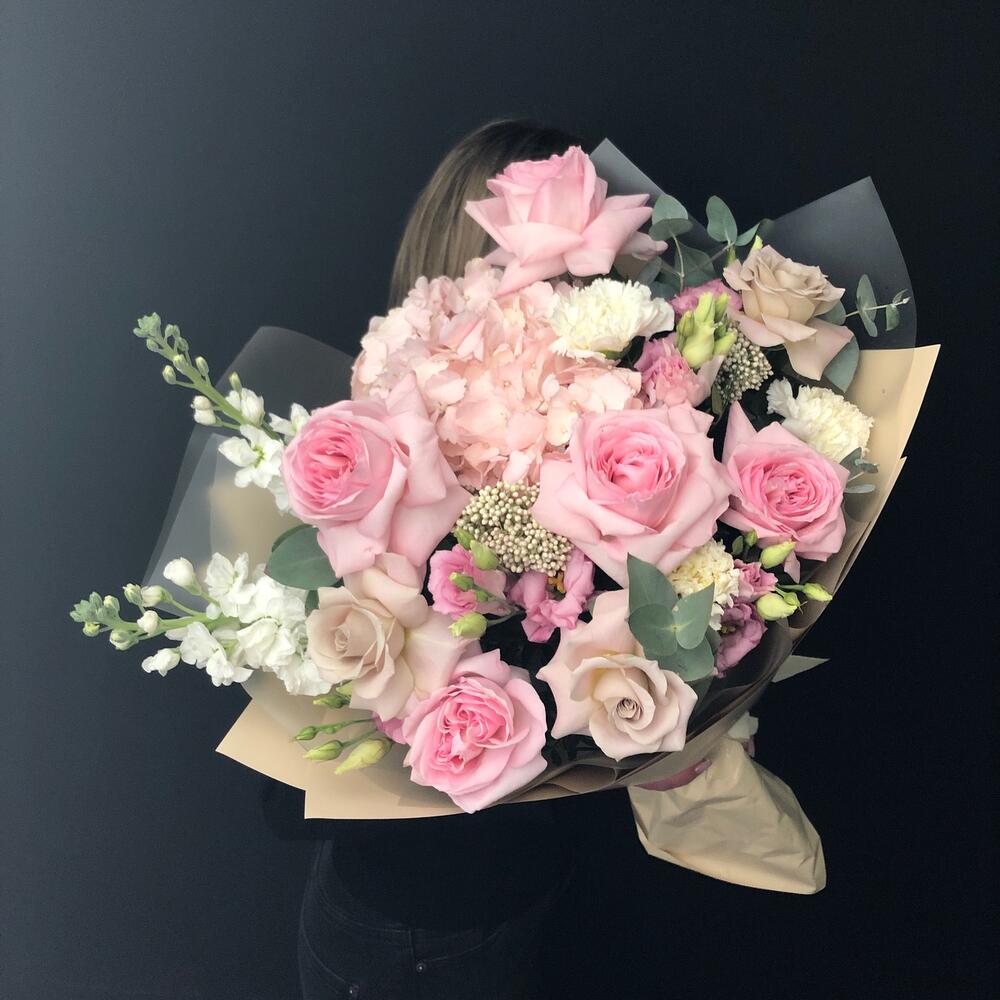 Категории: Гвоздики, Гортензии, Лизиантусы, Розы
