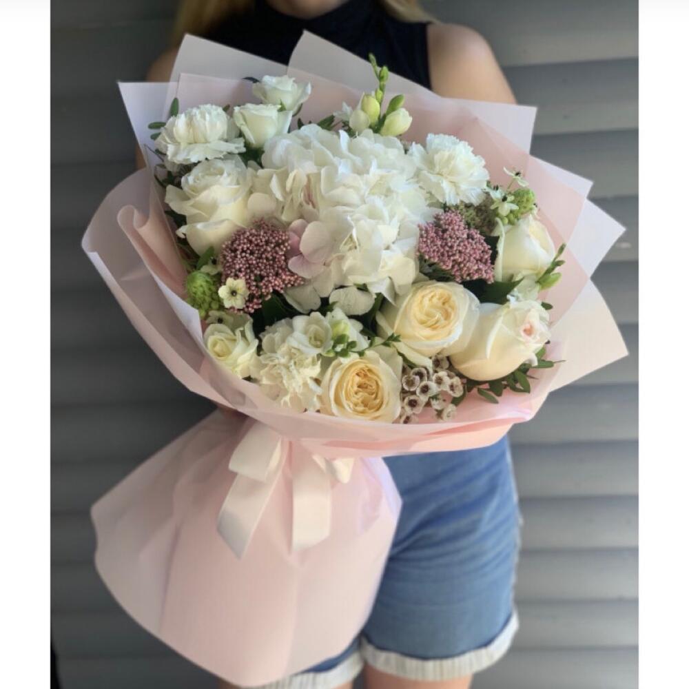 Гвоздики, Кустовые розы, Лизиантусы, Пионовидные розы, Розы