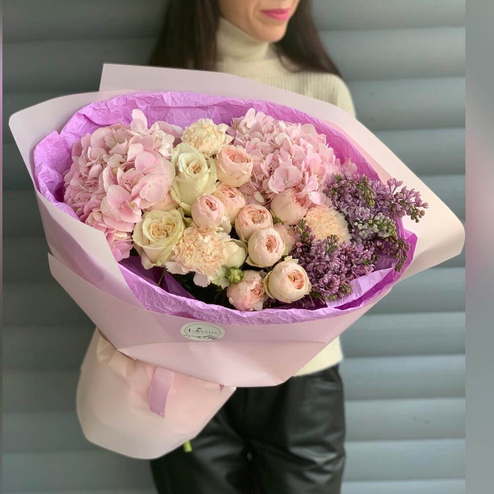 Гвоздики, Кустовые розы, Лизиантусы, Пионовидные розы, Розы