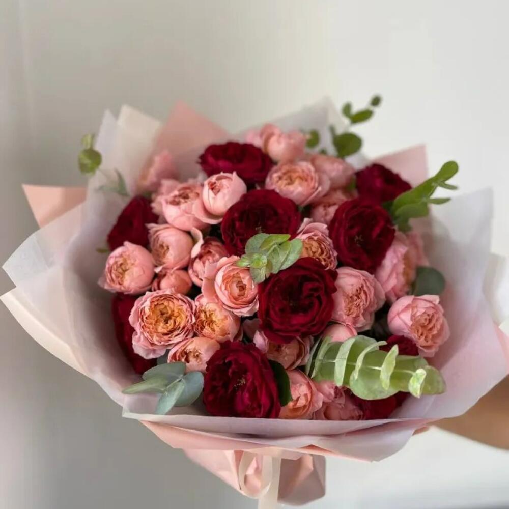 Гвоздики, Лизиантусы, Розы, Тюльпаны