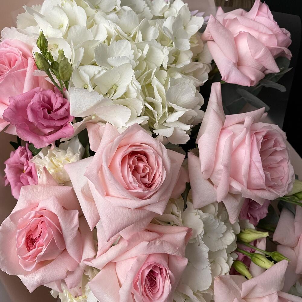 Категории: Гвоздики, Гортензии, Лизиантусы, Розы