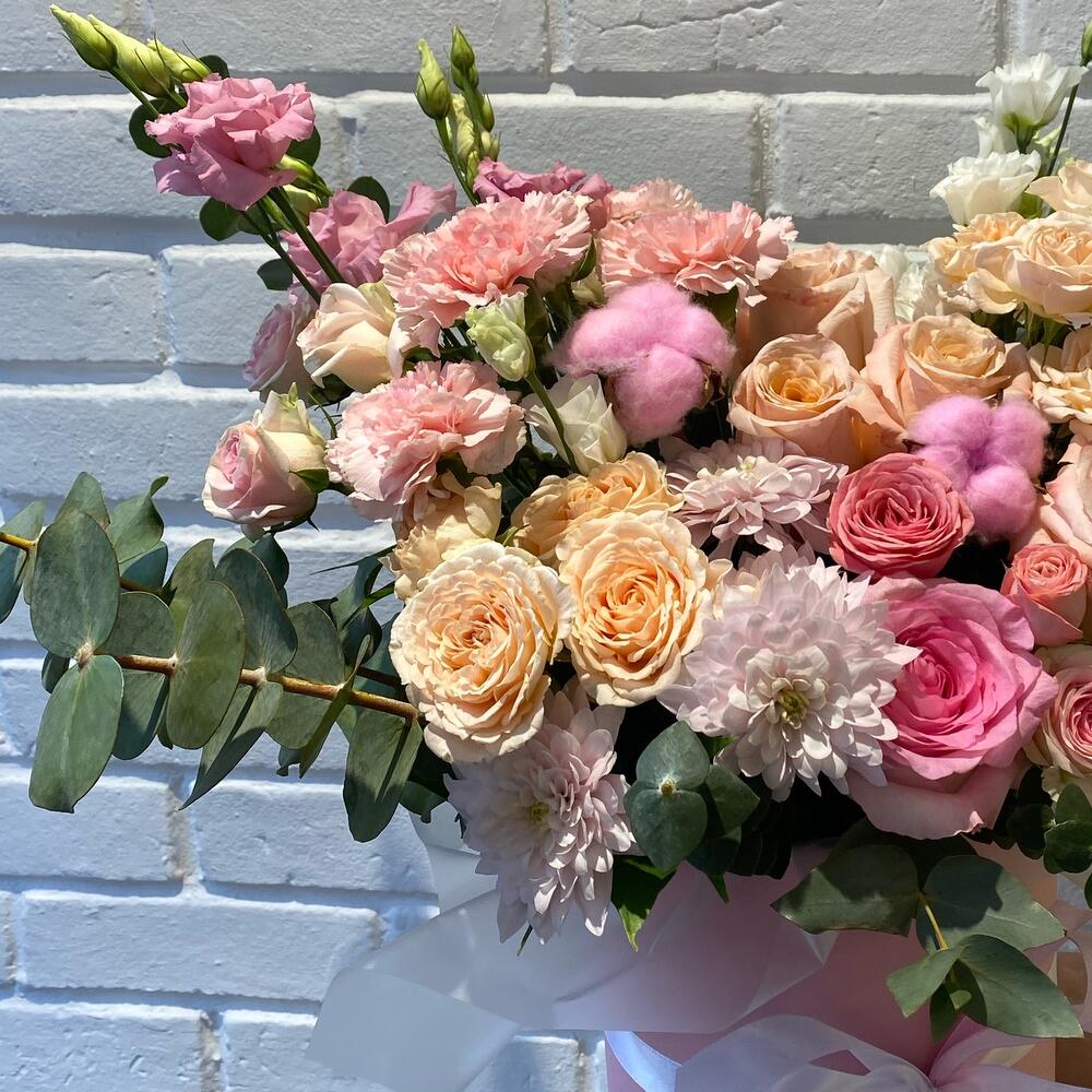 Кустовые розы, Лизиантусы, Розы, Сухоцвет
