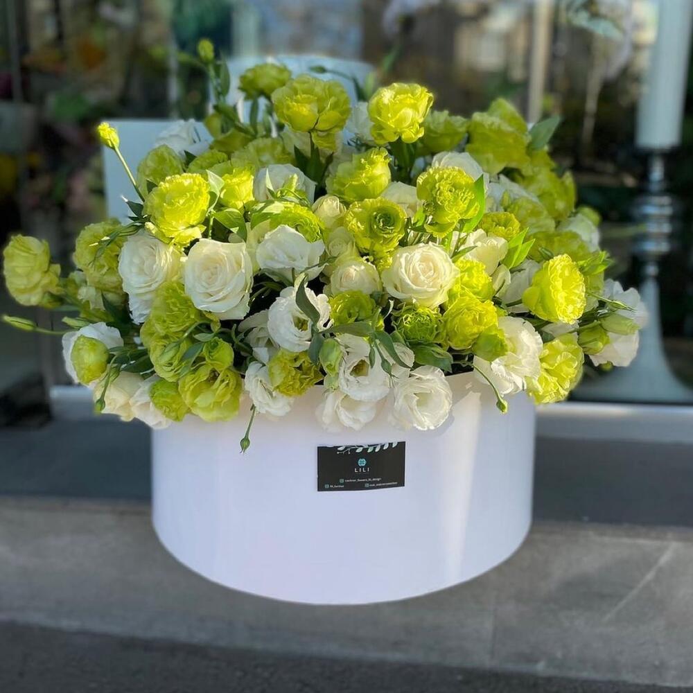 Альстромерии, Гвоздики, Кустовые розы, Лизиантусы, Розы, Хризантемы