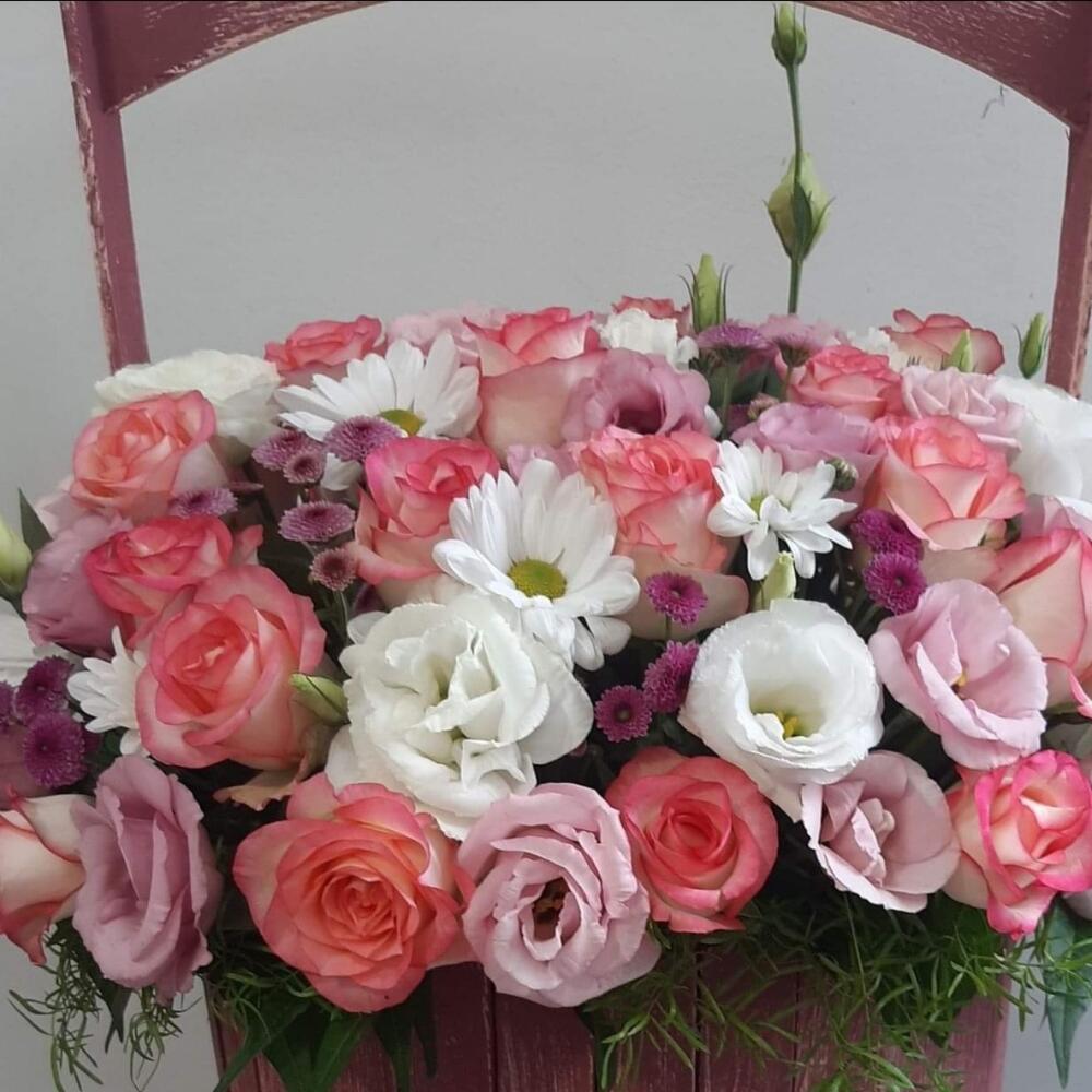 Альстромерии, Кустовые розы, Лизиантусы, Пионовидные розы, Розы, Ромашки