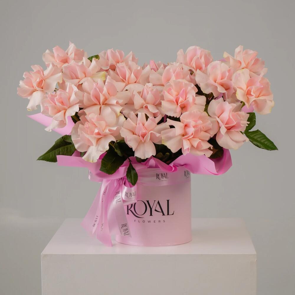 Нежные розы и Эустома в коробке "Особый случай"