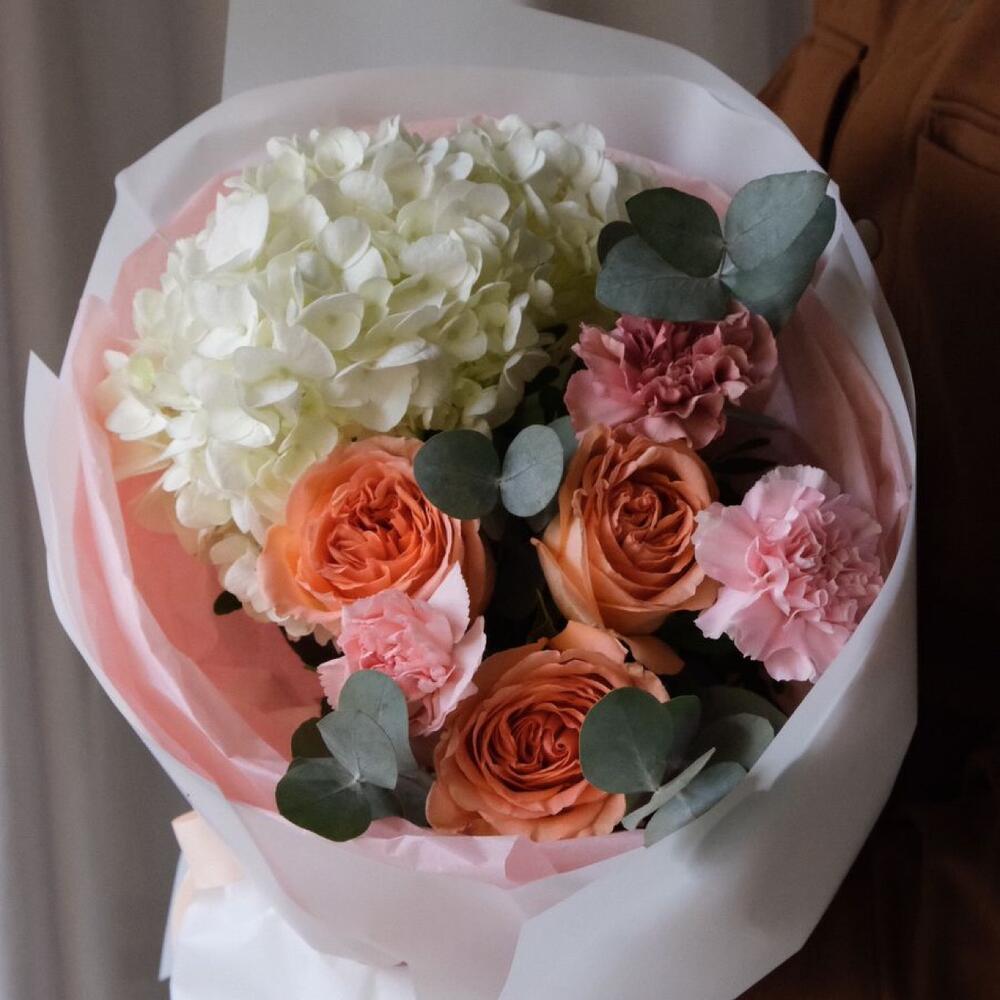 Гвоздики, Лизиантусы, Розы, Тюльпаны