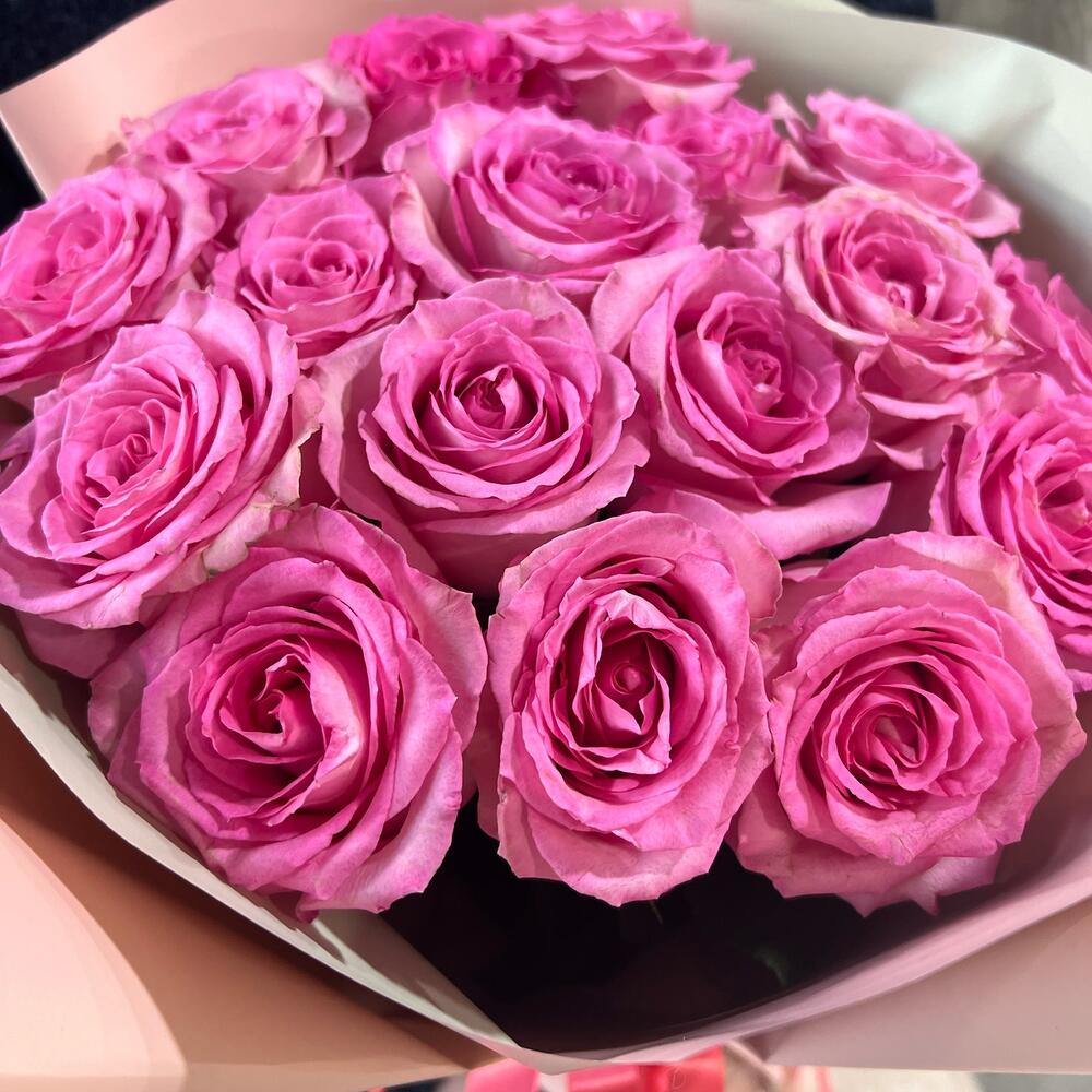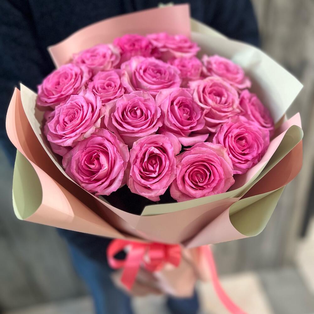 Моно букет из розовых роз 17 шт в фирменной упаковке
