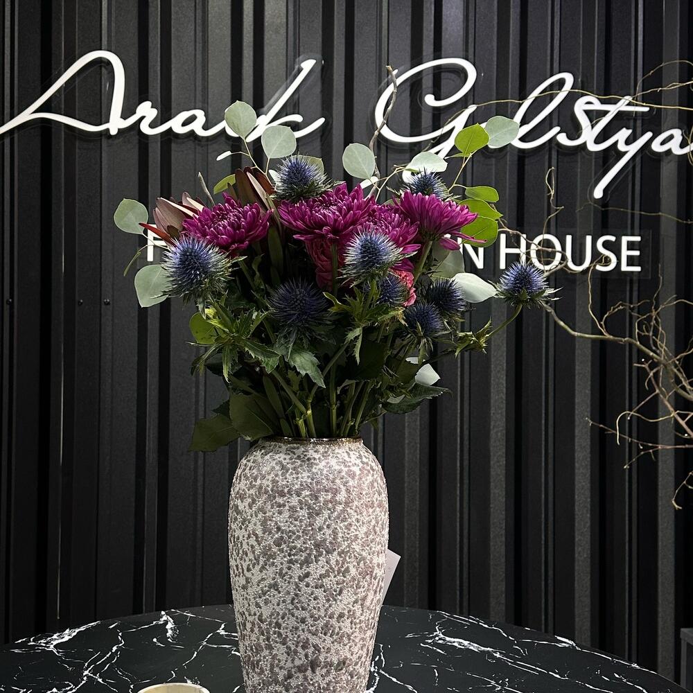 Категорий: Пионовидные розы, Розы, Хризантемы, Эвкалипт, Эрингиум