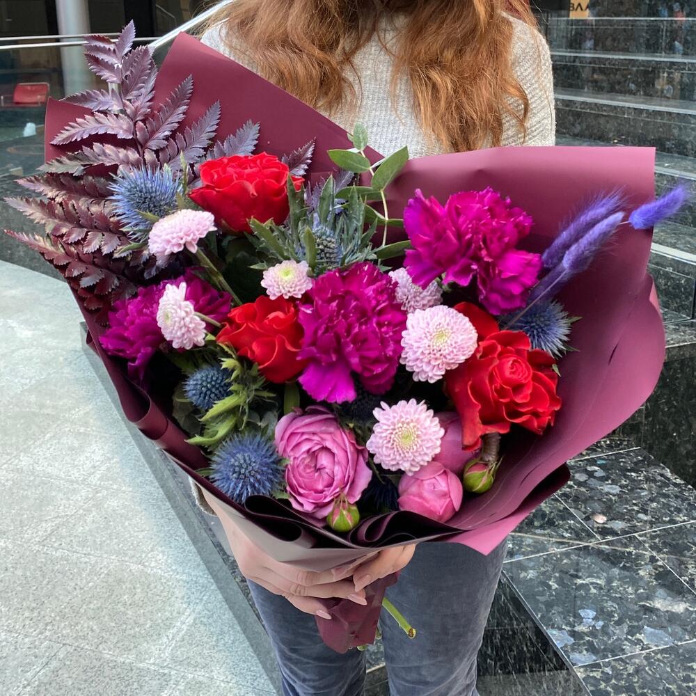 Гвоздики, Кустовые розы, Пионовидные розы, Розы
