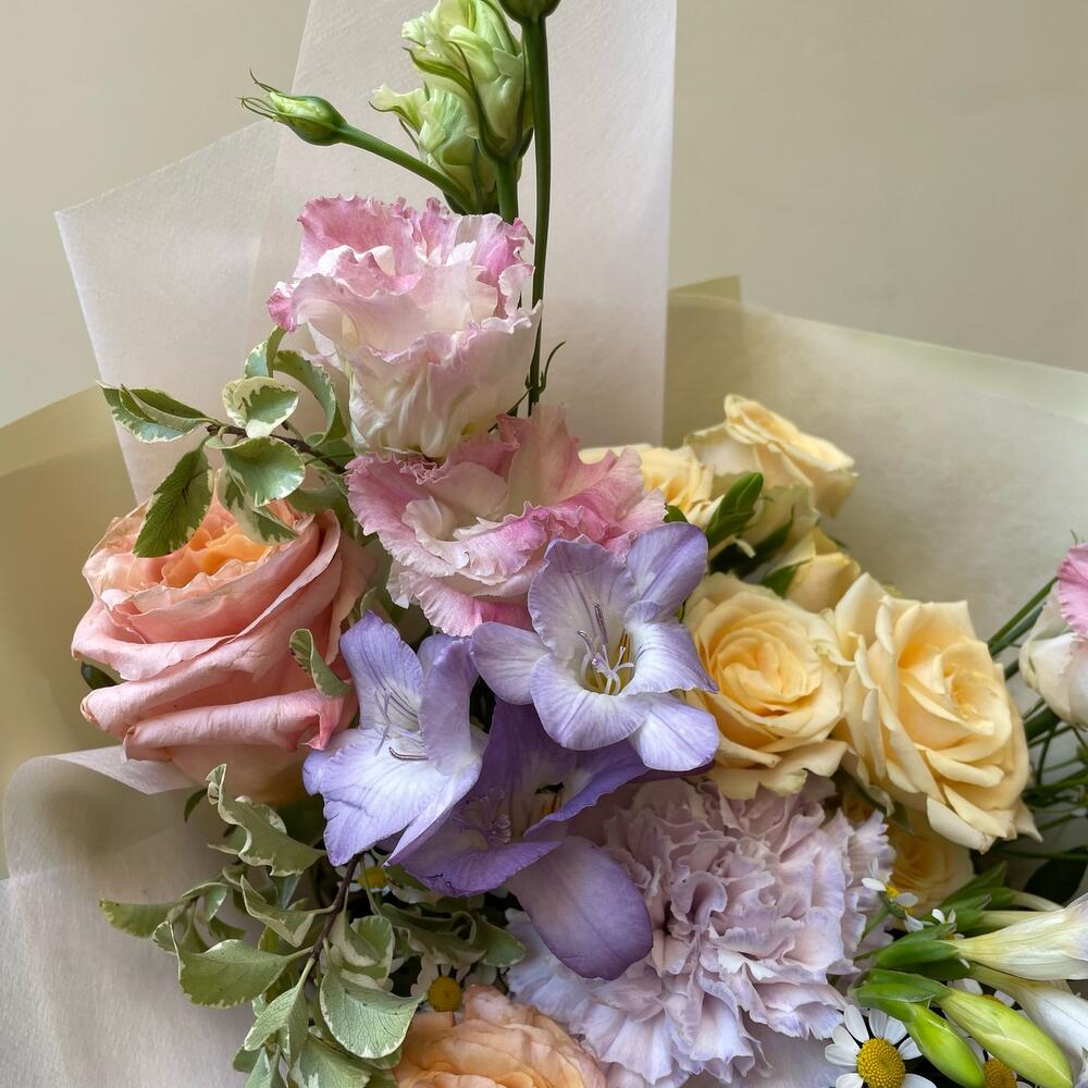 Гвоздики, Кустовые розы, Лизиантусы, Пионовидные розы, Розы