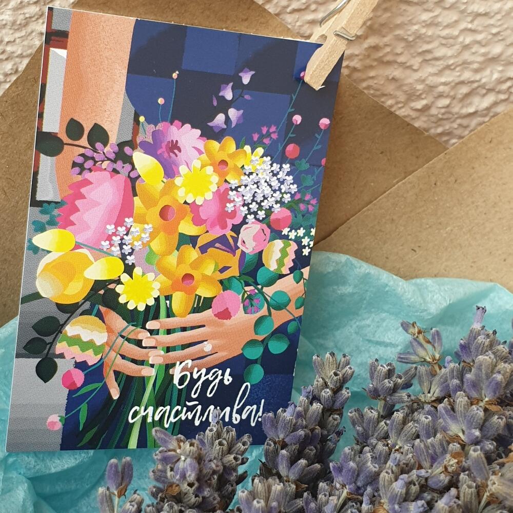 Лаванда (сухоцвет) – 150 гр.Лента атласная – 2 шт.Крафт упаковка – 1 шт.Открыточка с вашими пожеланиями – 1 шт.тишью бирюзовое – 3 шт.