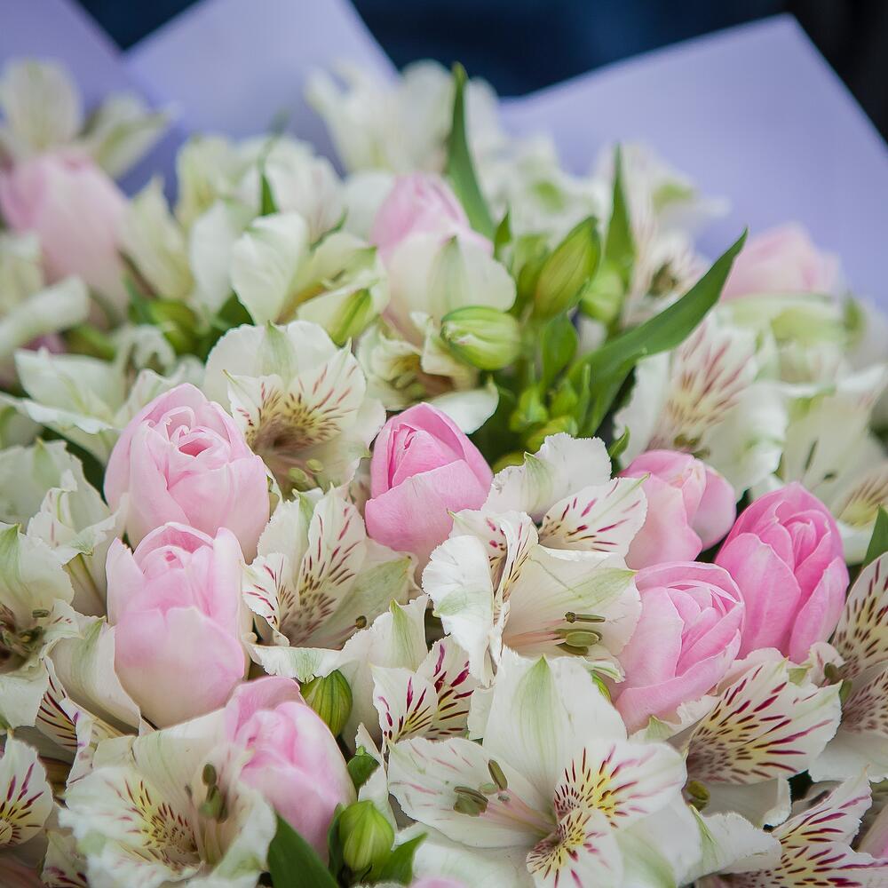 Тюльпан розовый – 20 шт.Альстромерия – 15 шт.
